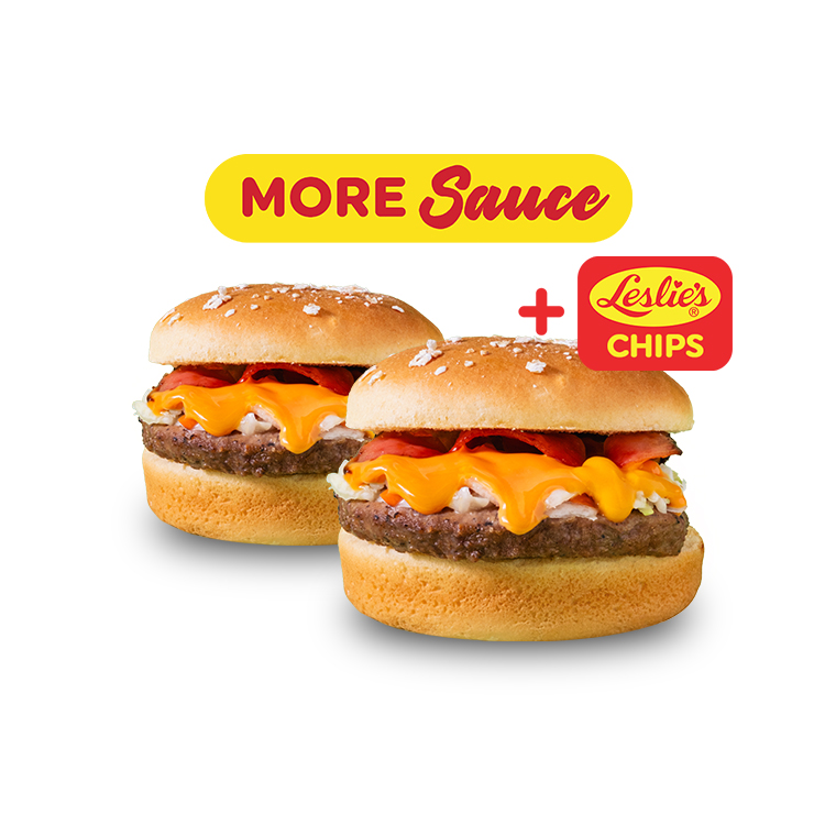 Buy 1 Take 1 Bacon Cheese Burger + Leslie's Premium Chips (₱ 128)