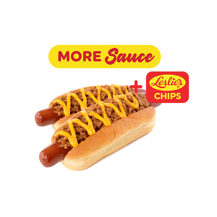 Buy 1 Take 1 Chili con Carne Cheese Franks + Leslie's Premium Chips (₱ 128)